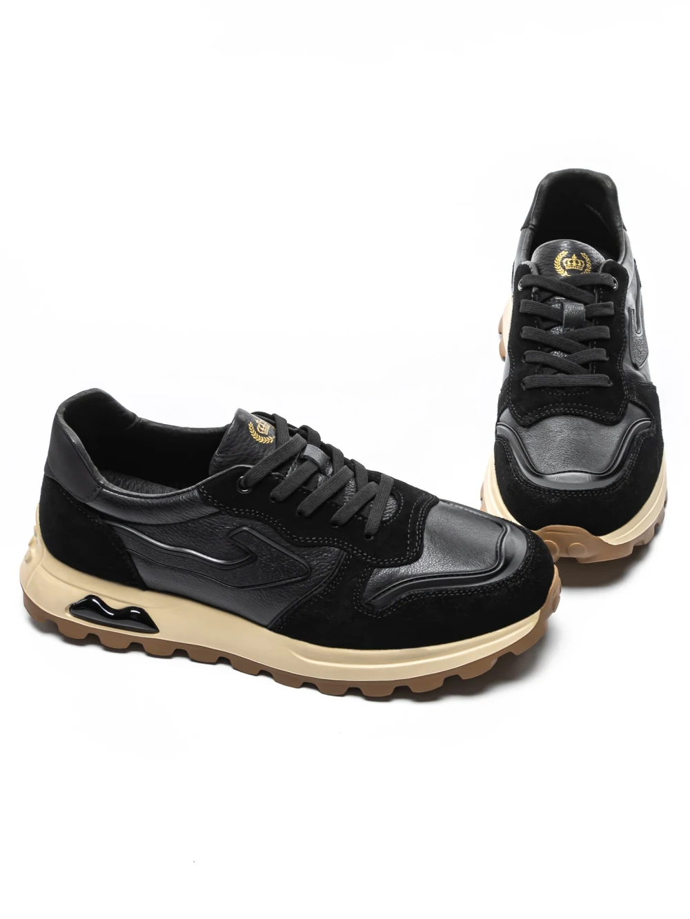 Muške sportske cipele od prirodne kože 12-179 Crna | Advancer