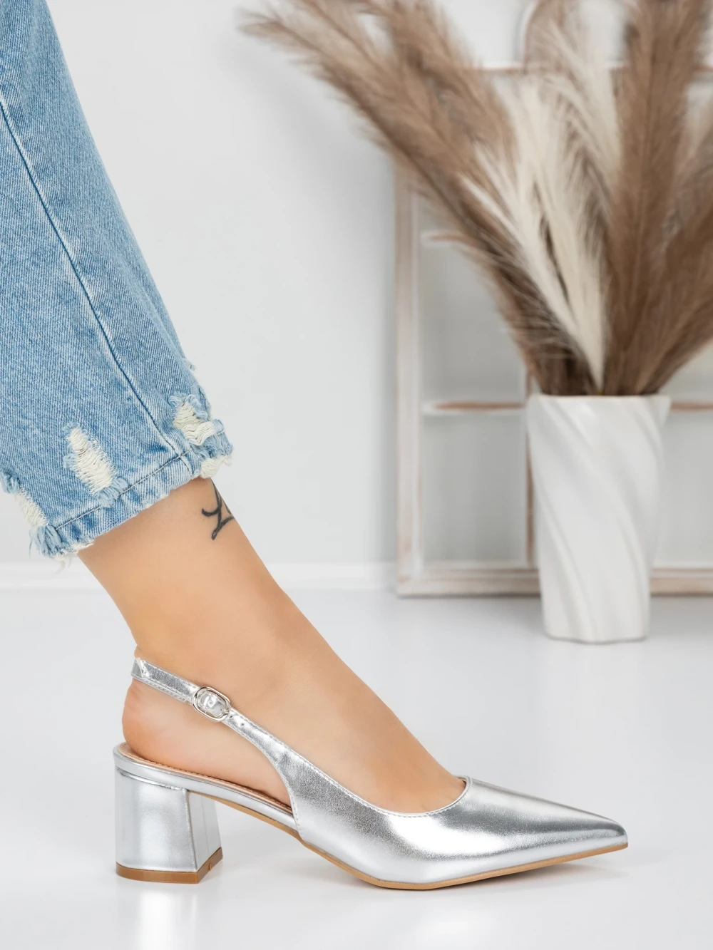 Cipele s debelom petom 5YZ11 Srebrna | Mei