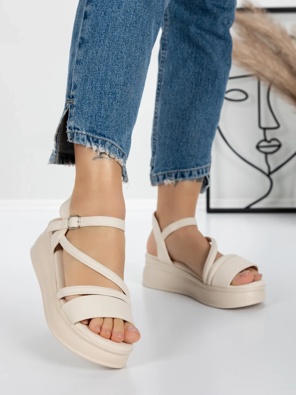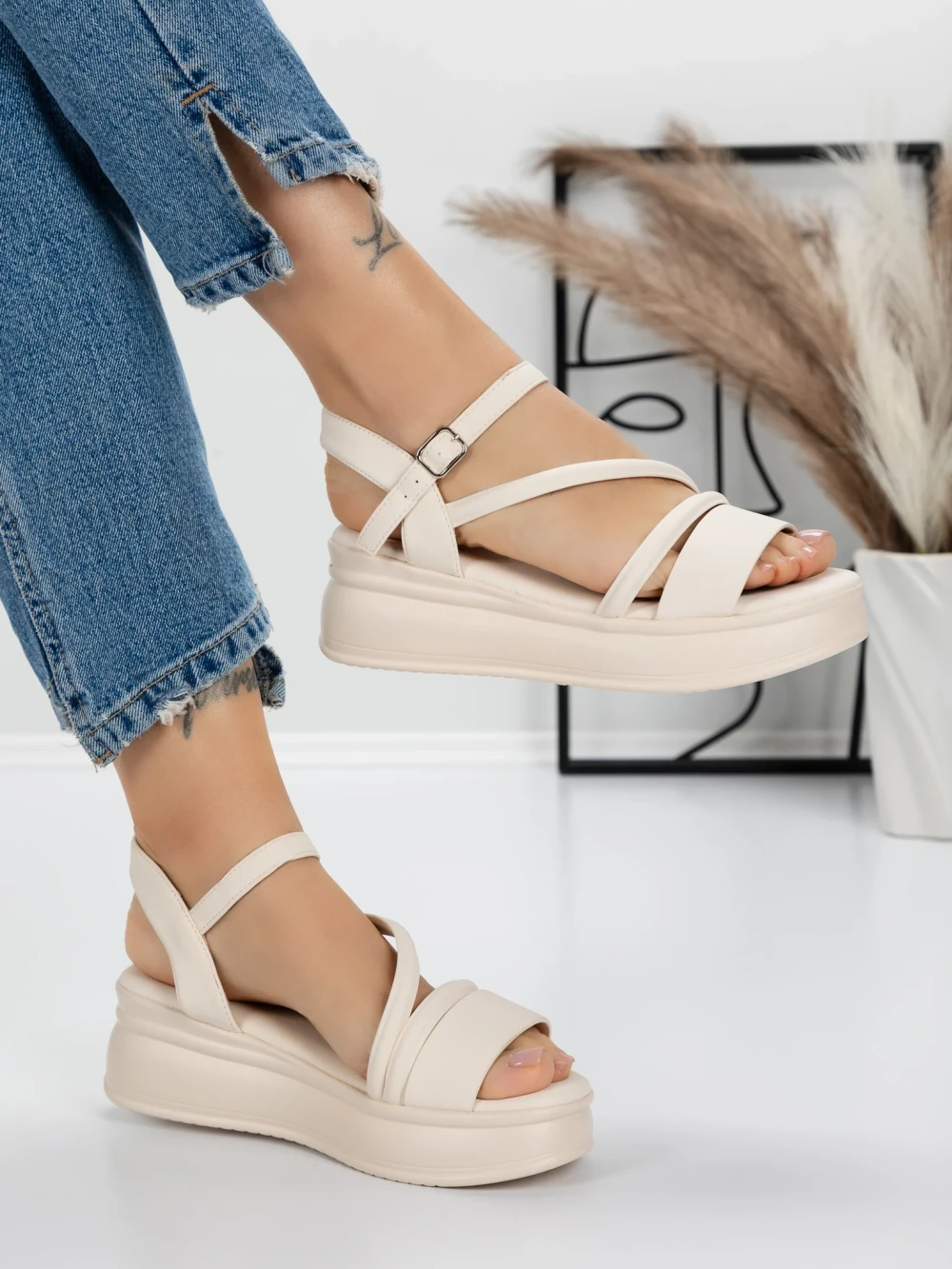 Sandale s platformom za žene 5H18 Bež | Mei