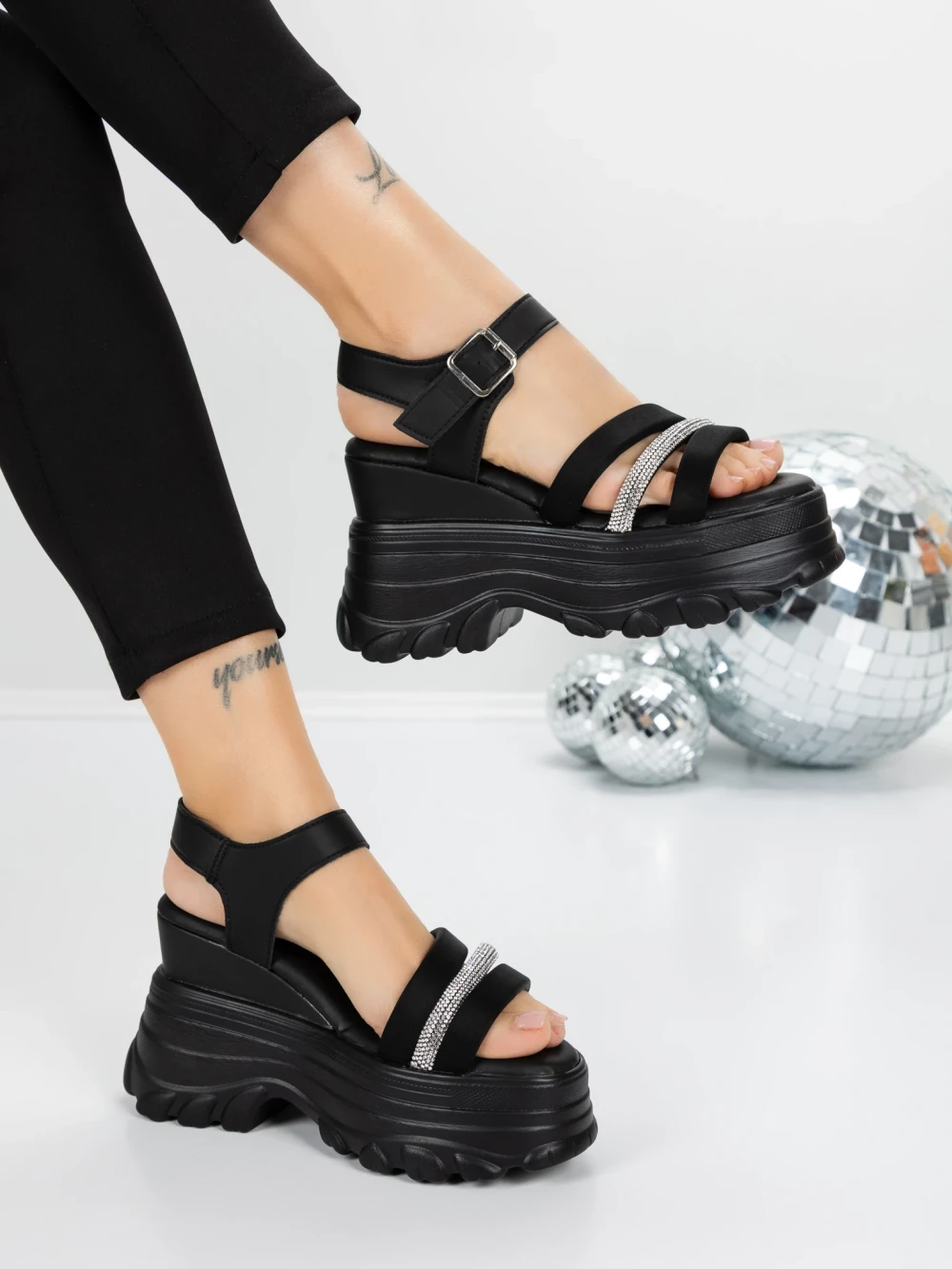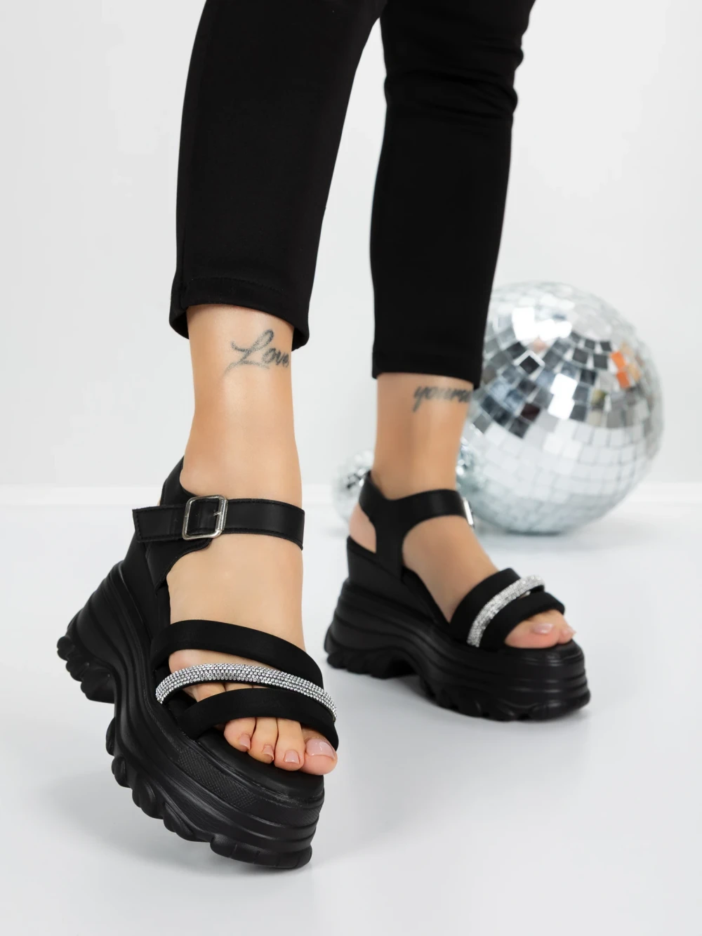 Sandale s platformom za žene 5WL37 Crna-Bijela | Mei