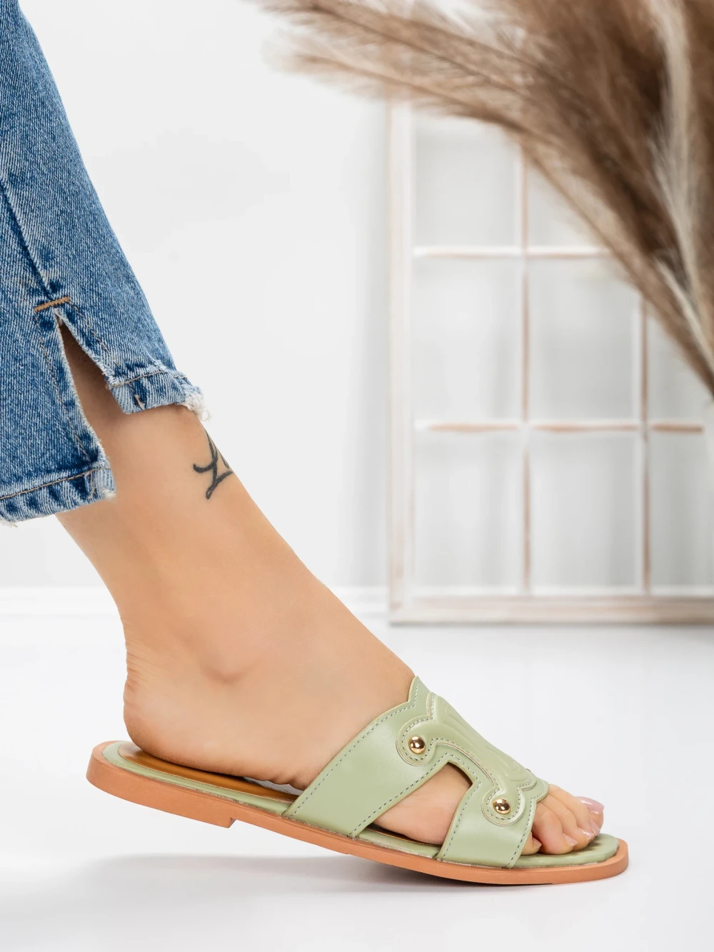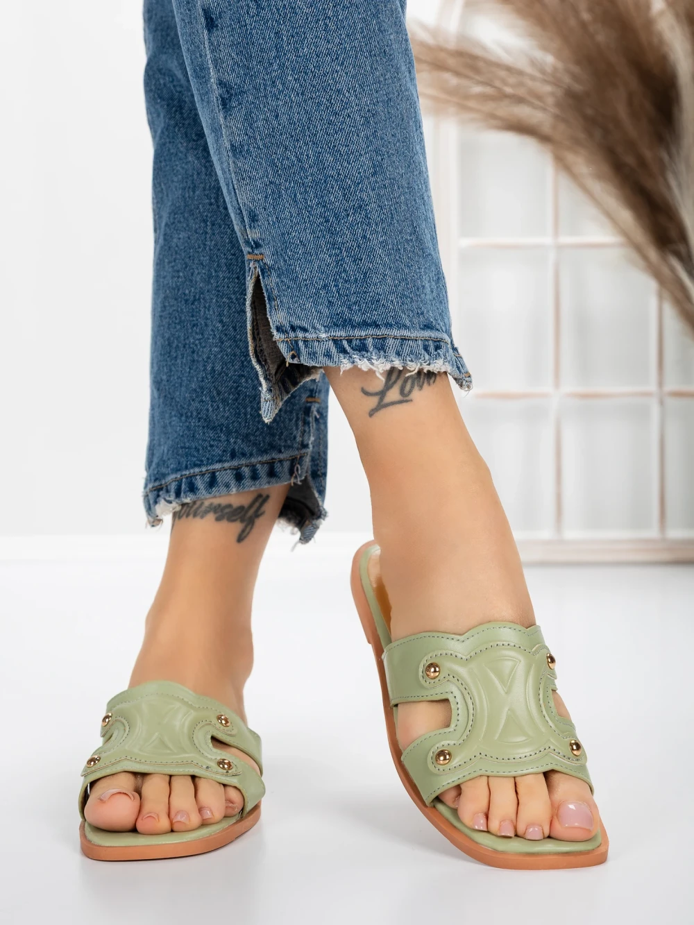 Papuče za žene s niskim potplatom 3AW307 Zelena | Mei