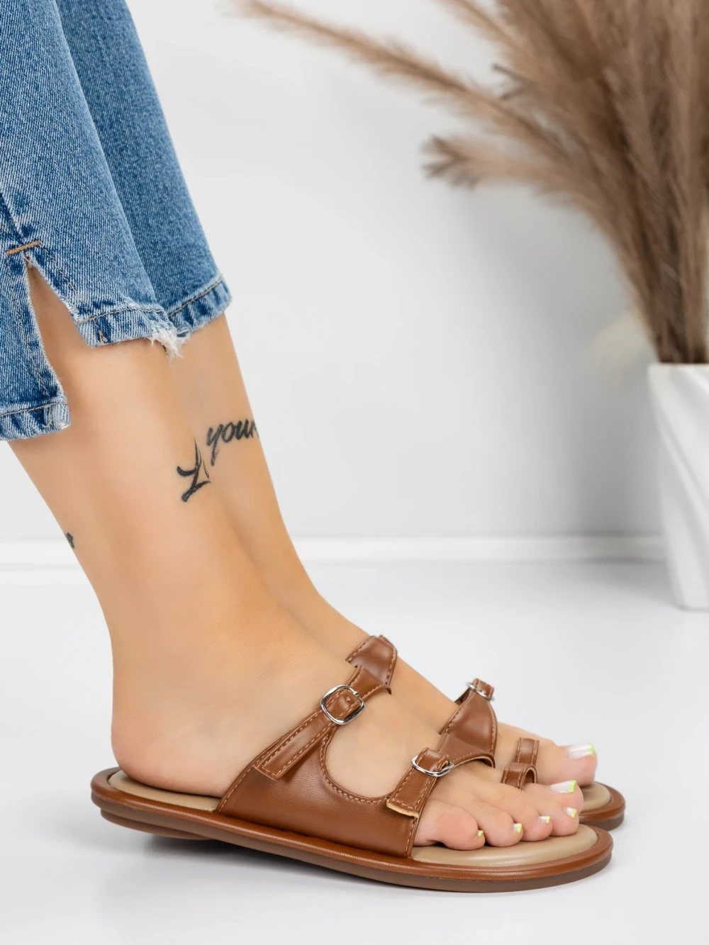 Papuče za žene s niskim potplatom J588-5 Smeđa | Mei