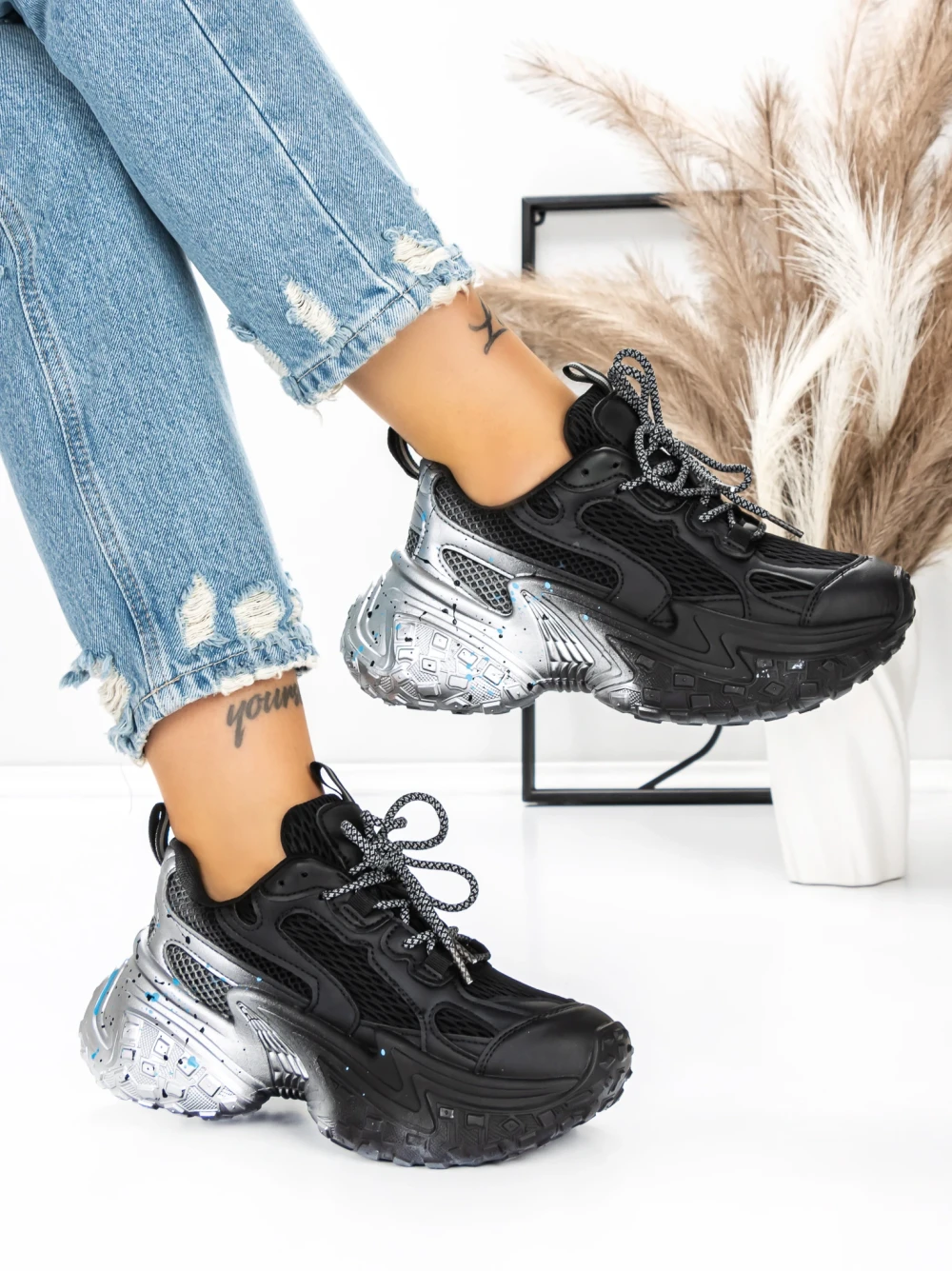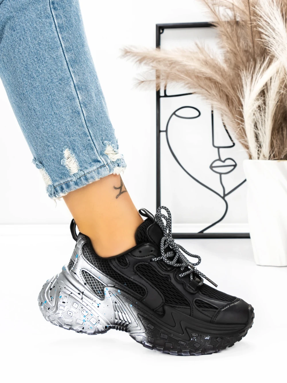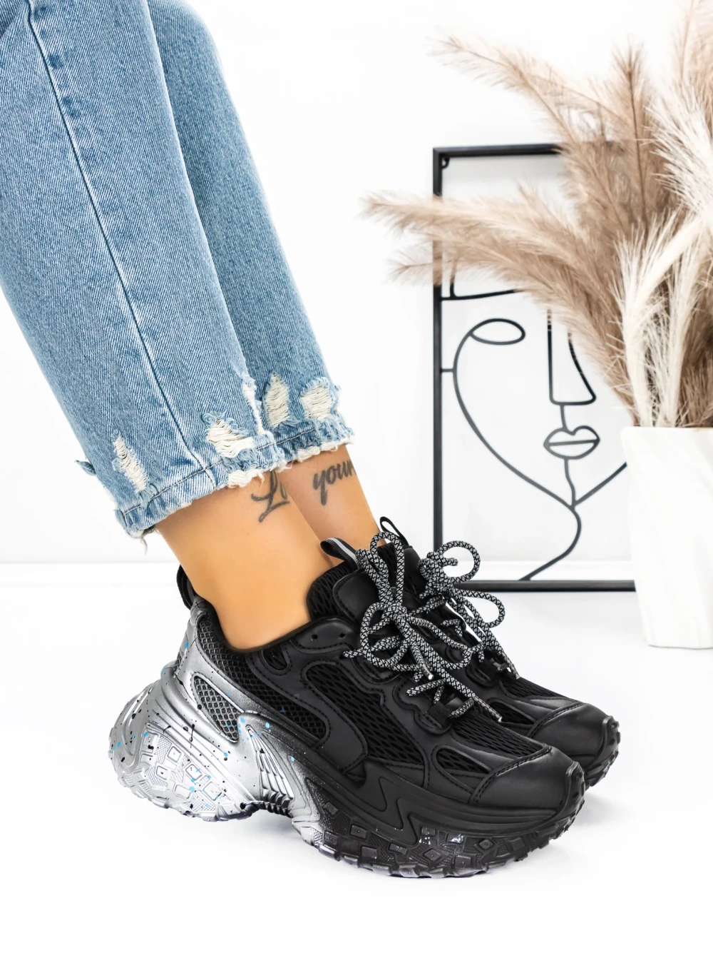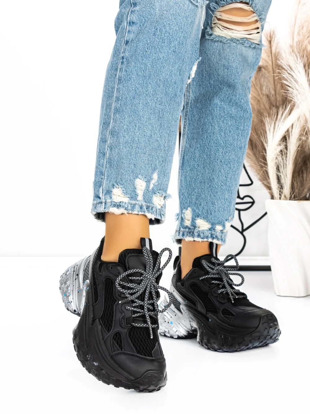 Sportske cipele s platformom za žene D10 Crna | Mei