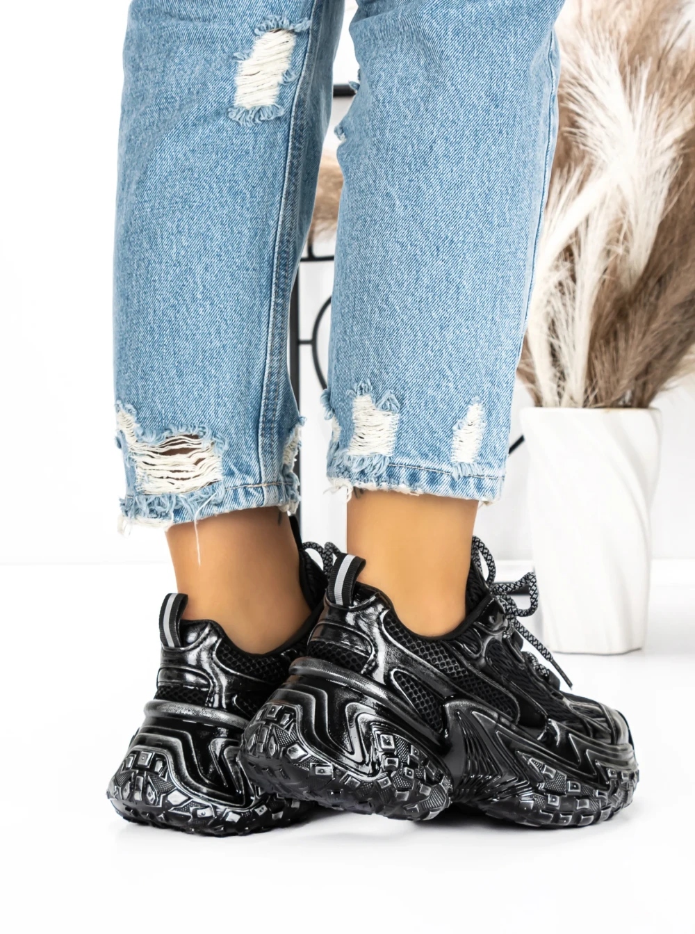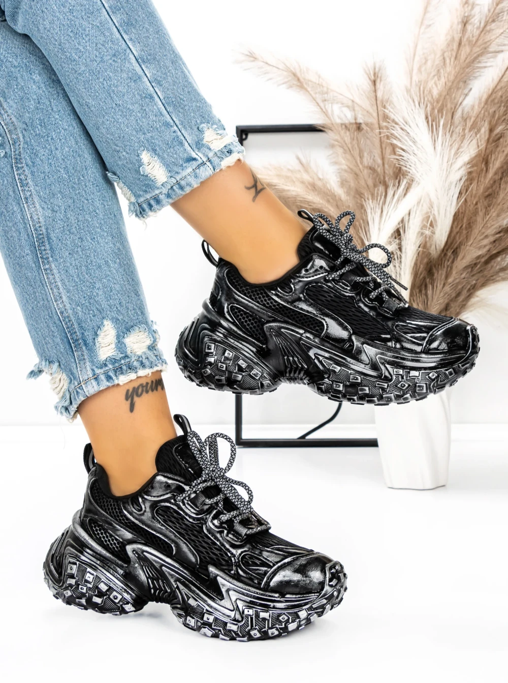 Sportske cipele s platformom za žene 5WL83 Crna-Srebrna | Mei