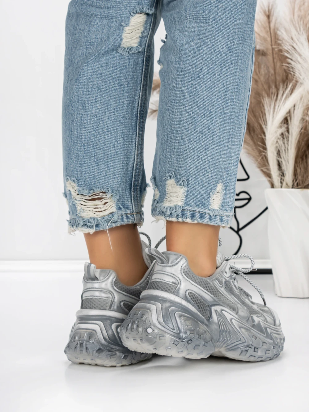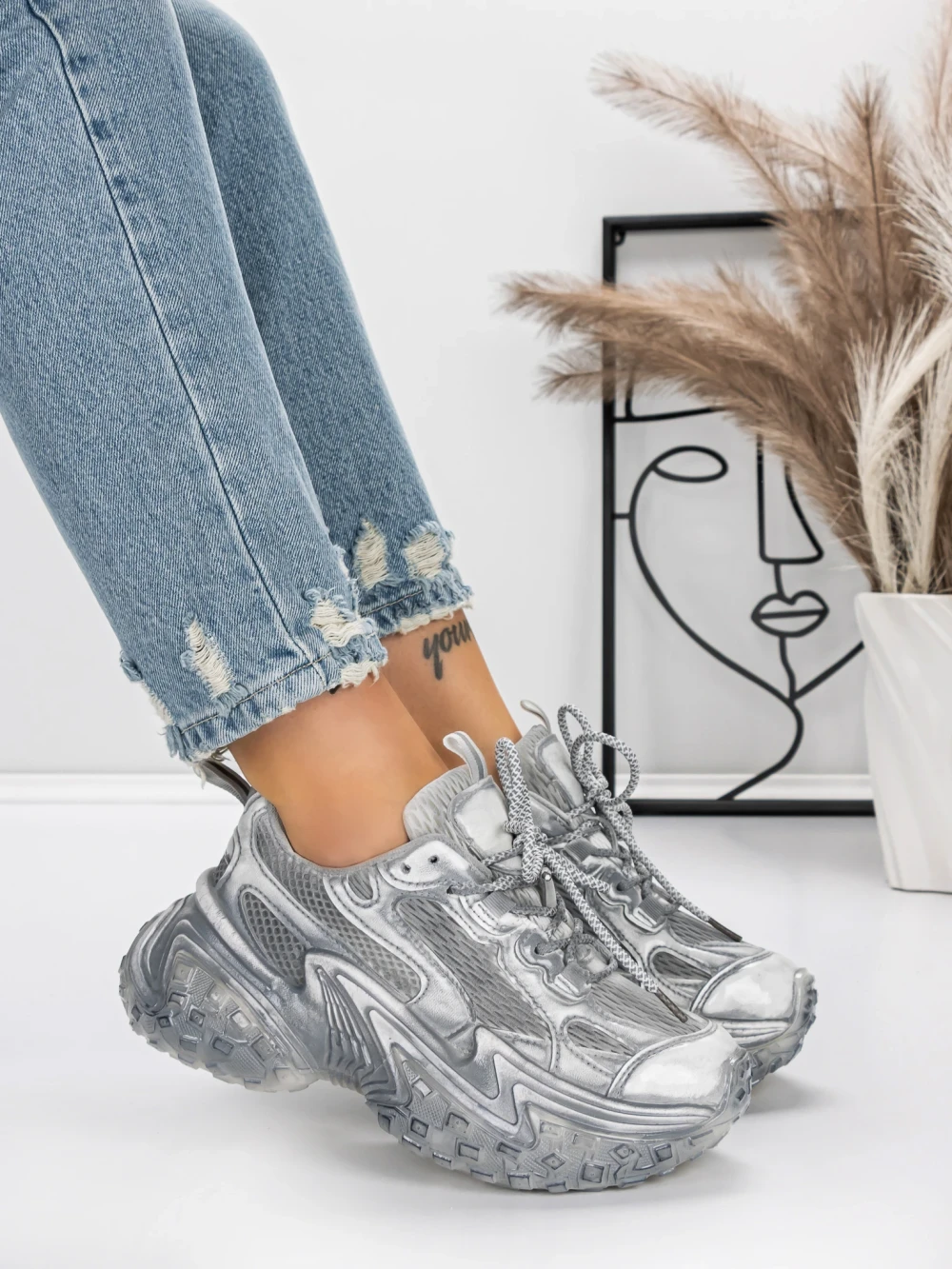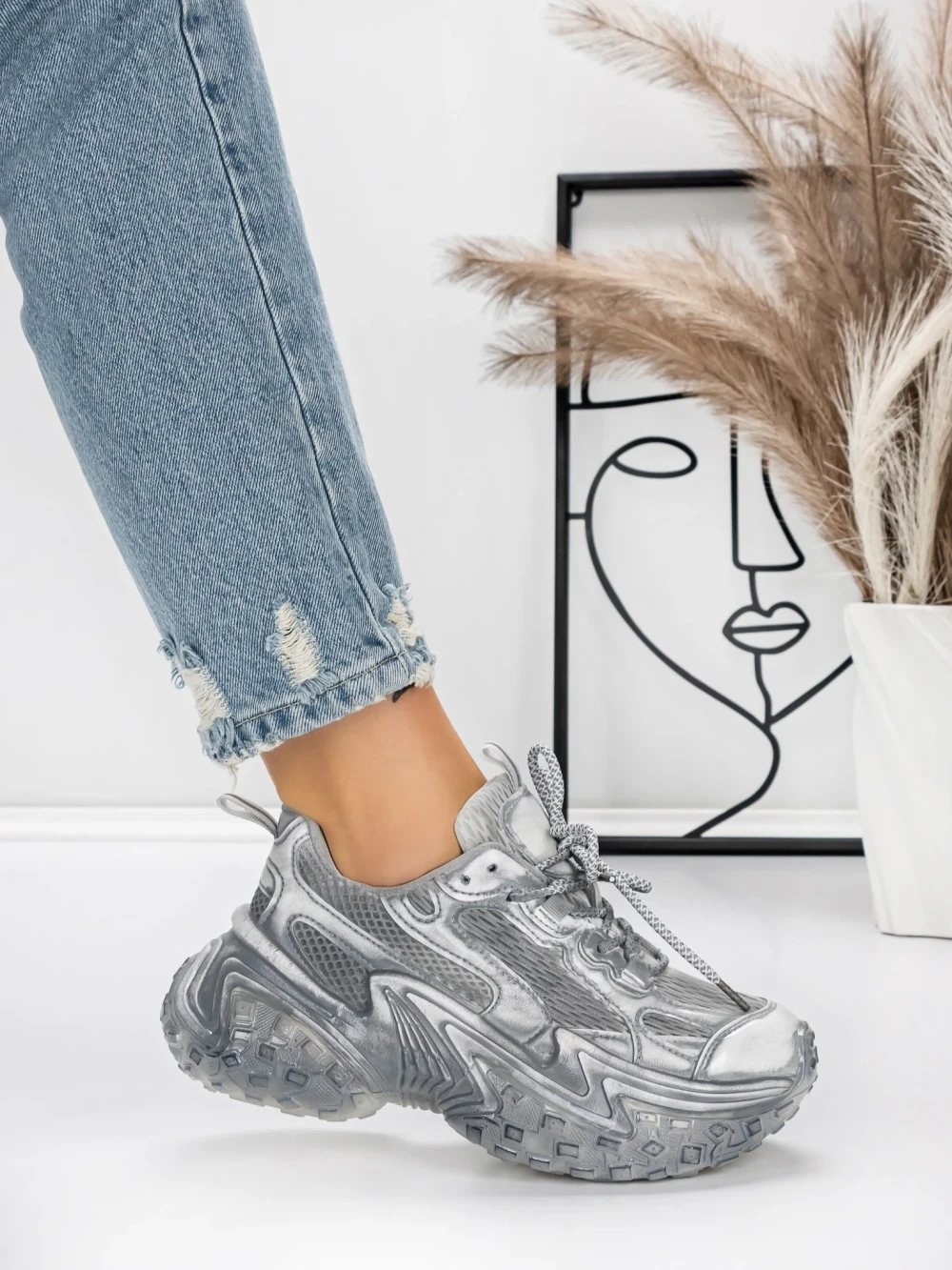 Sportske cipele s platformom za žene M0182-104 Srebrna | Seniorah