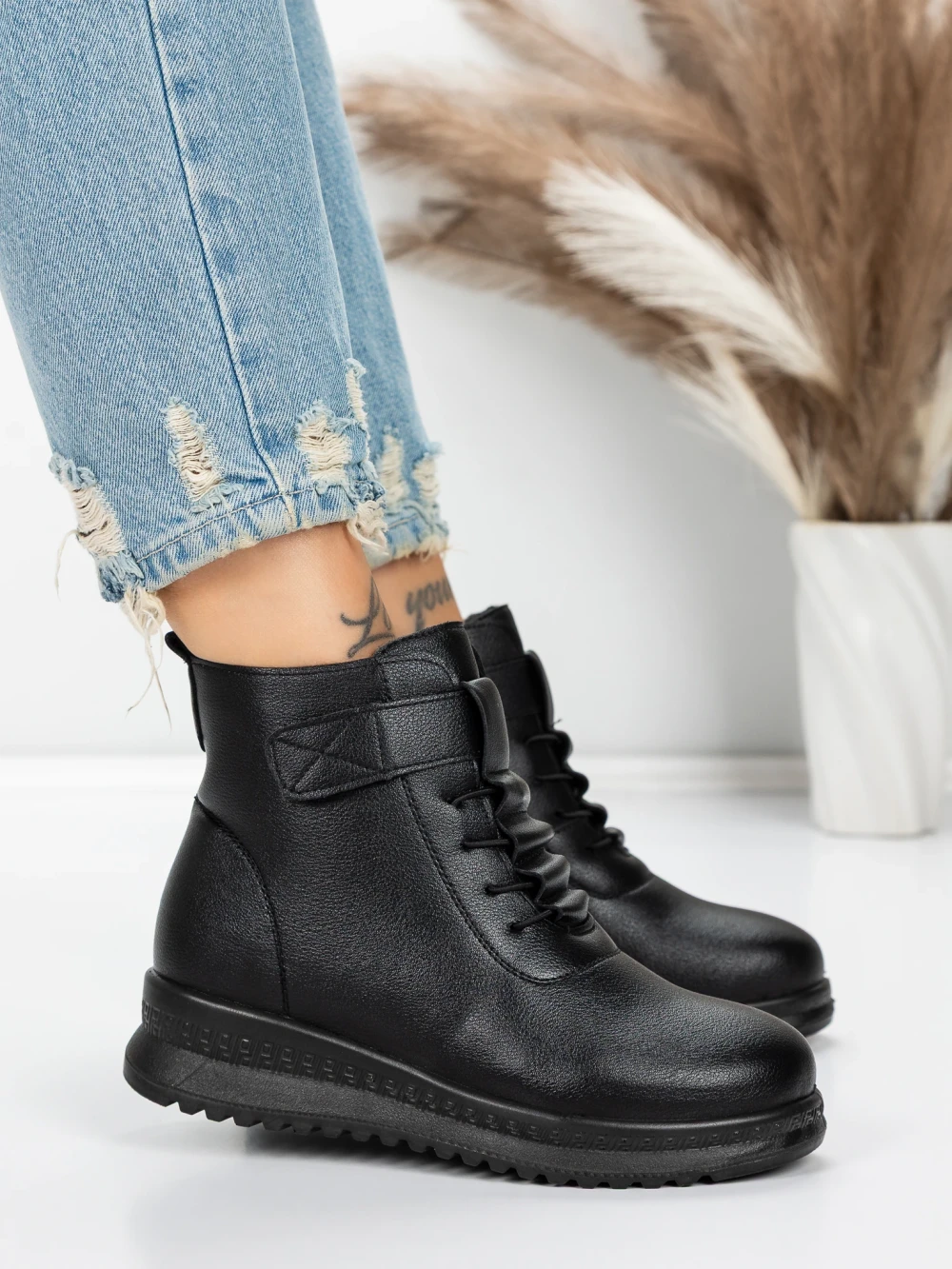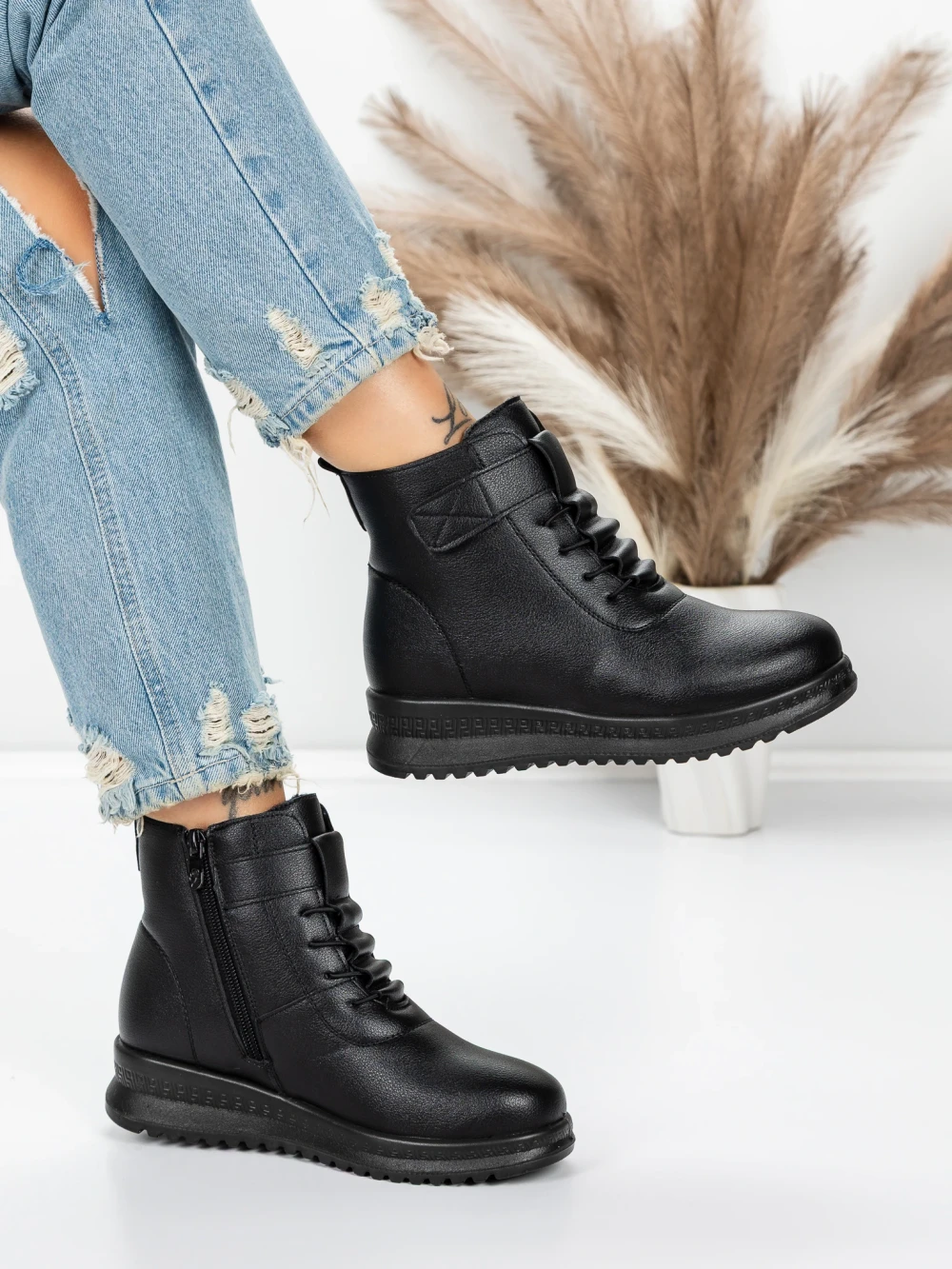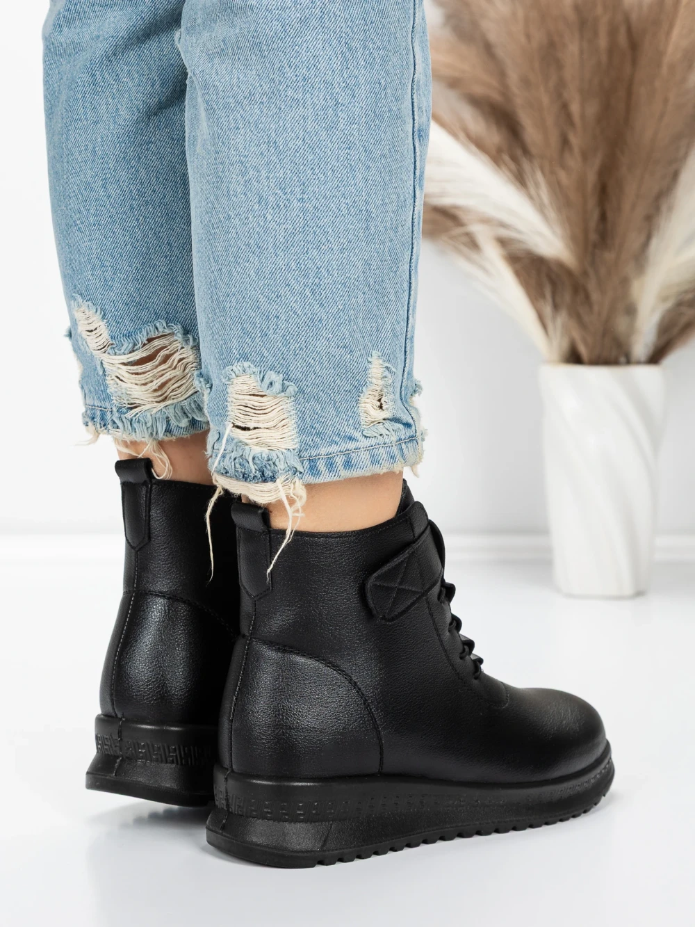 Niske čizme s debelom petom i platformom 3KV20 Crna | Mei