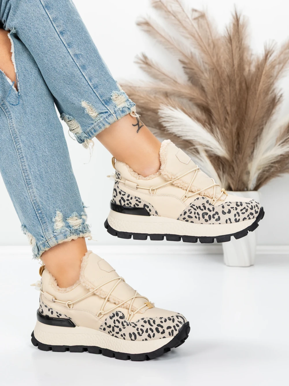 Ženske casual cipele od prirodne kože 58W26 Žuta-Leopard | Pantoful