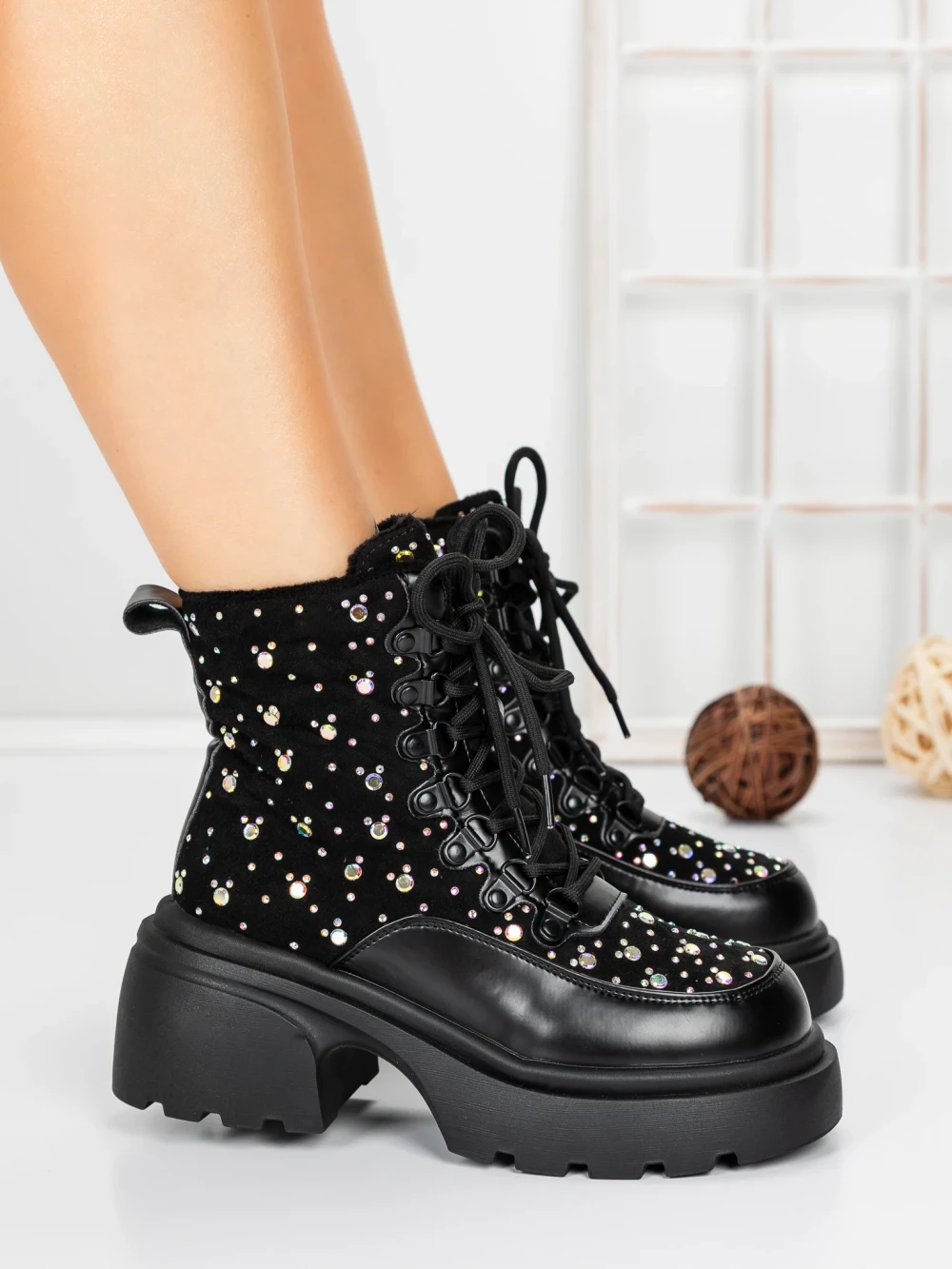 Niske čizme s debelom petom i platformom 3C3 Crna | Mei