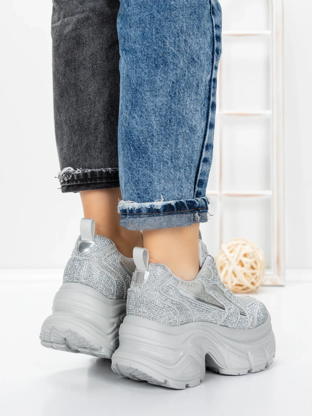 Sportske cipele s platformom za žene 3561 Srebrna | Mei