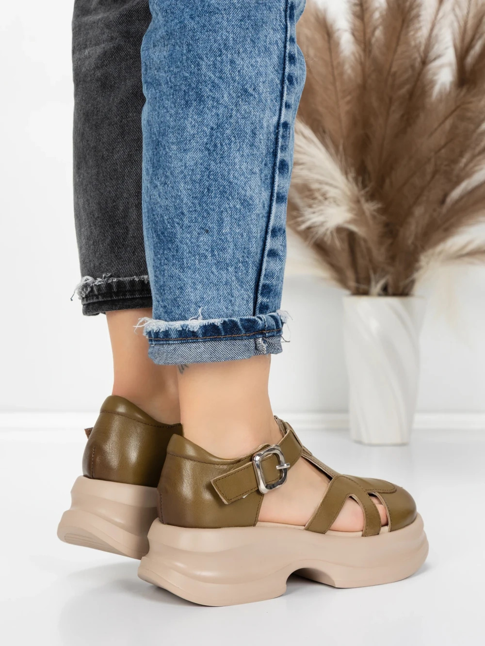 ženske sandale od prave kože 10668 Kaki | Advancer