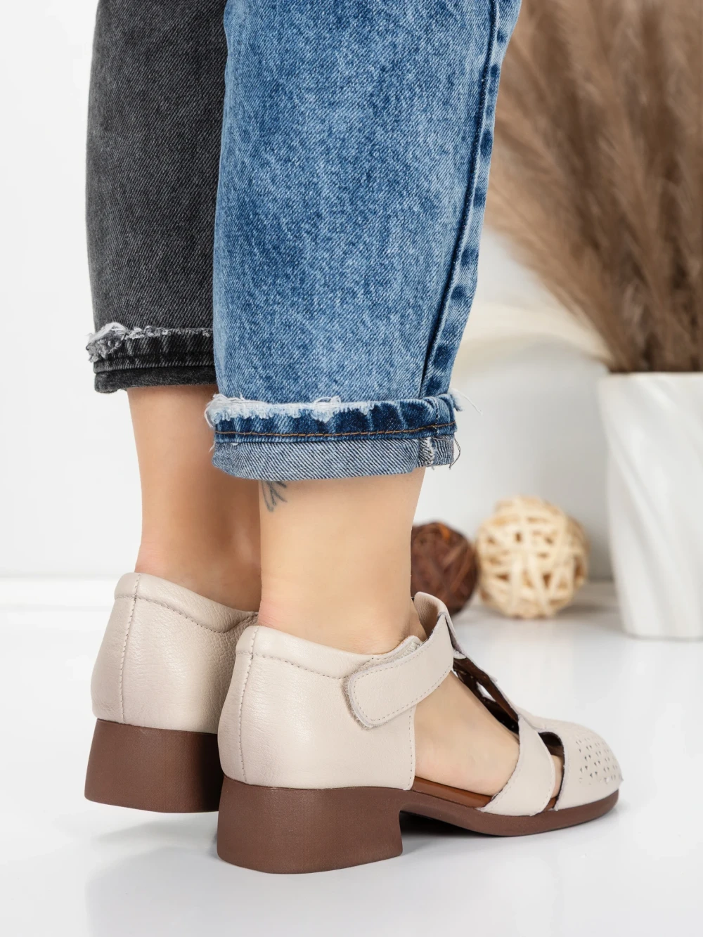 ženske sandale od prave kože 1171 Krem | Formatione
