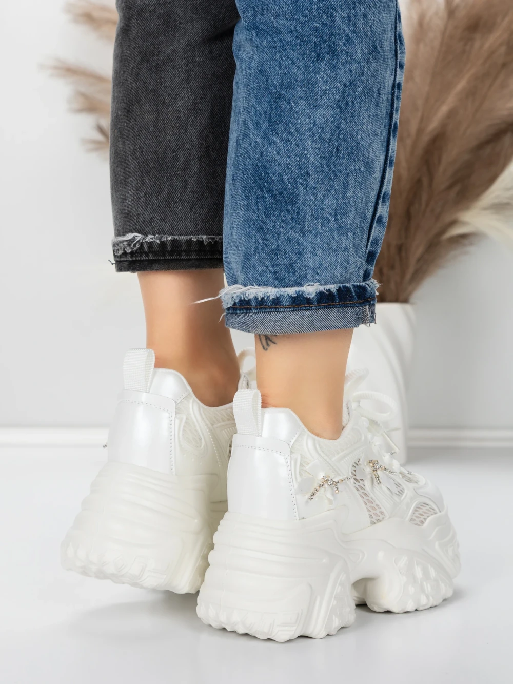 Sportske cipele s platformom za žene 6166-95 Bijela | Mei