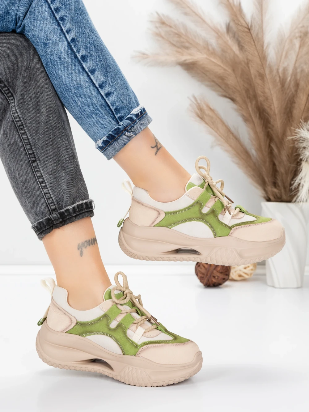 Ženske sportske cipele od prirodne kože 2577 Krem-Svijetlo Zelena | Franco Gerardo