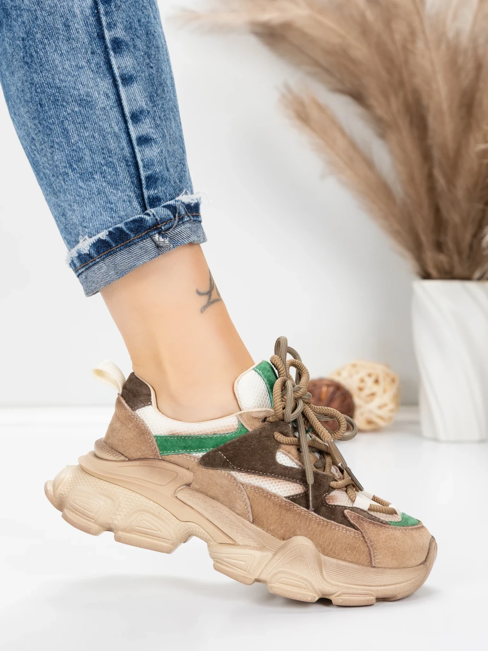 U MeiMall možete pronaći Ženske sportske cipele od prirodne kože HY5798 Smeđa-Zelena | Franco Gerardo. Živahna Smeđa-Zelena boja, zajedno s kvalitetnim materijalima i modernim dizajnom, impresionirat će vas! MeiMall je online trgovina koja nudi široku ponudu proizvoda za žene, muškarce i djecu. Ovdje možete pronaći cipele, odjeću, torbe i modne dodatke. Dostava je brza, a rok povrata je 14 dana.