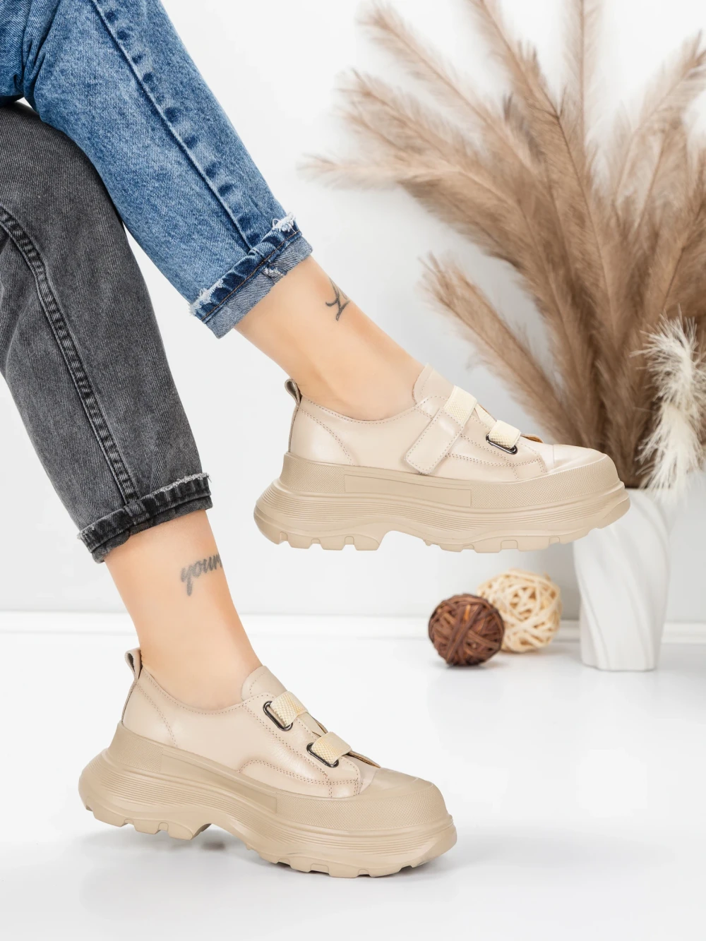 Ženske sportske cipele od prirodne kože 6806 Krem | Advancer