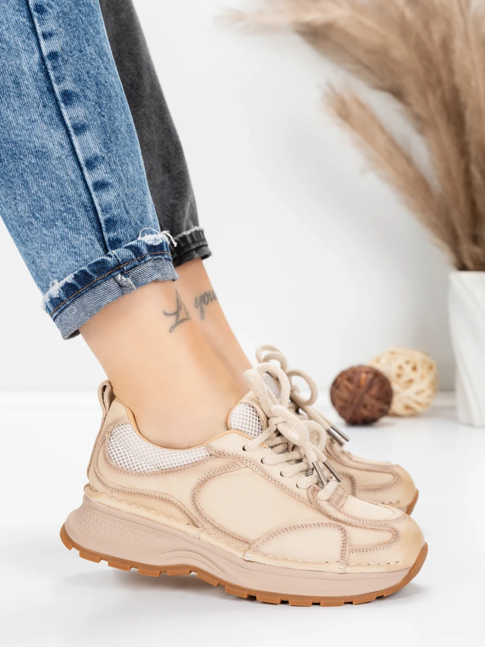 Ženske sportske cipele od prirodne kože 10018 Krem | Franco Gerardo