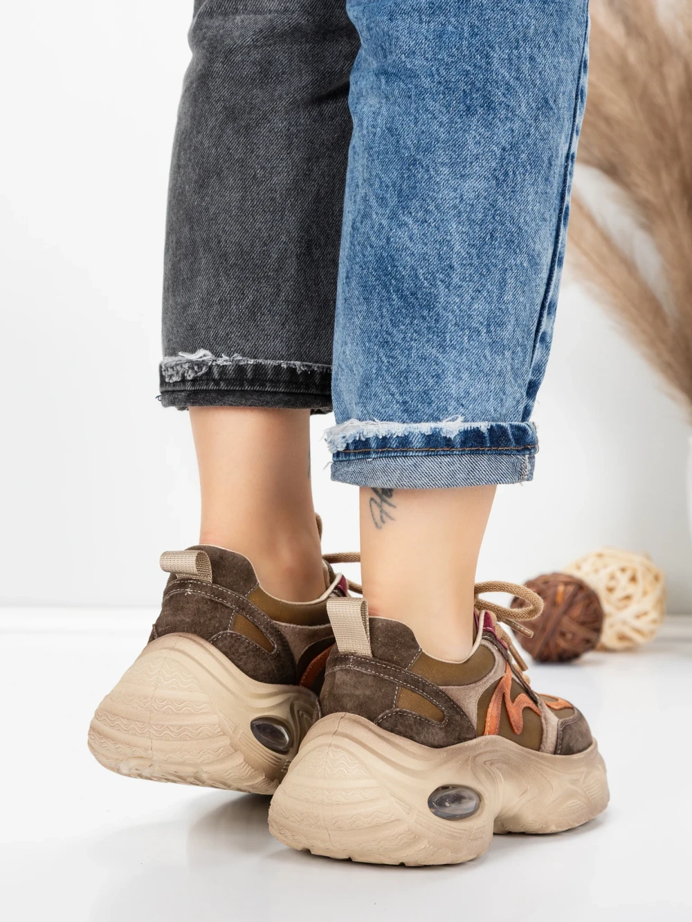 Ženske sportske cipele od prirodne kože HY2128 Kava-Narančasta | Franco Gerardo