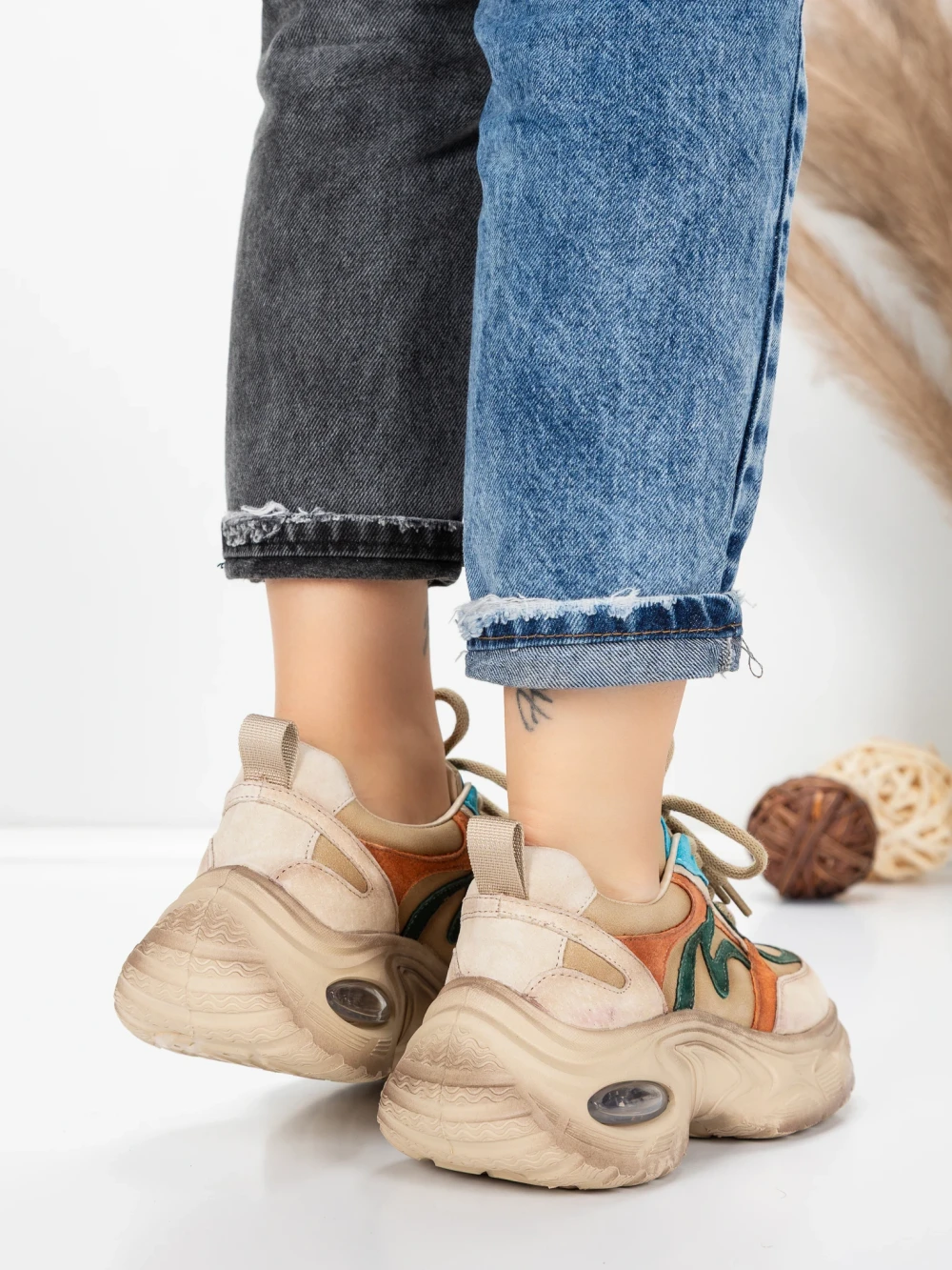 Ženske sportske cipele od prirodne kože HY2128 Krem-Zelena | Franco Gerardo