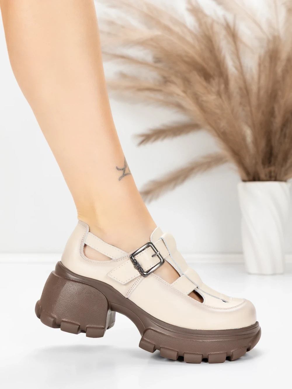 Ženske casual cipele od prirodne kože 23282 Krem | Advancer