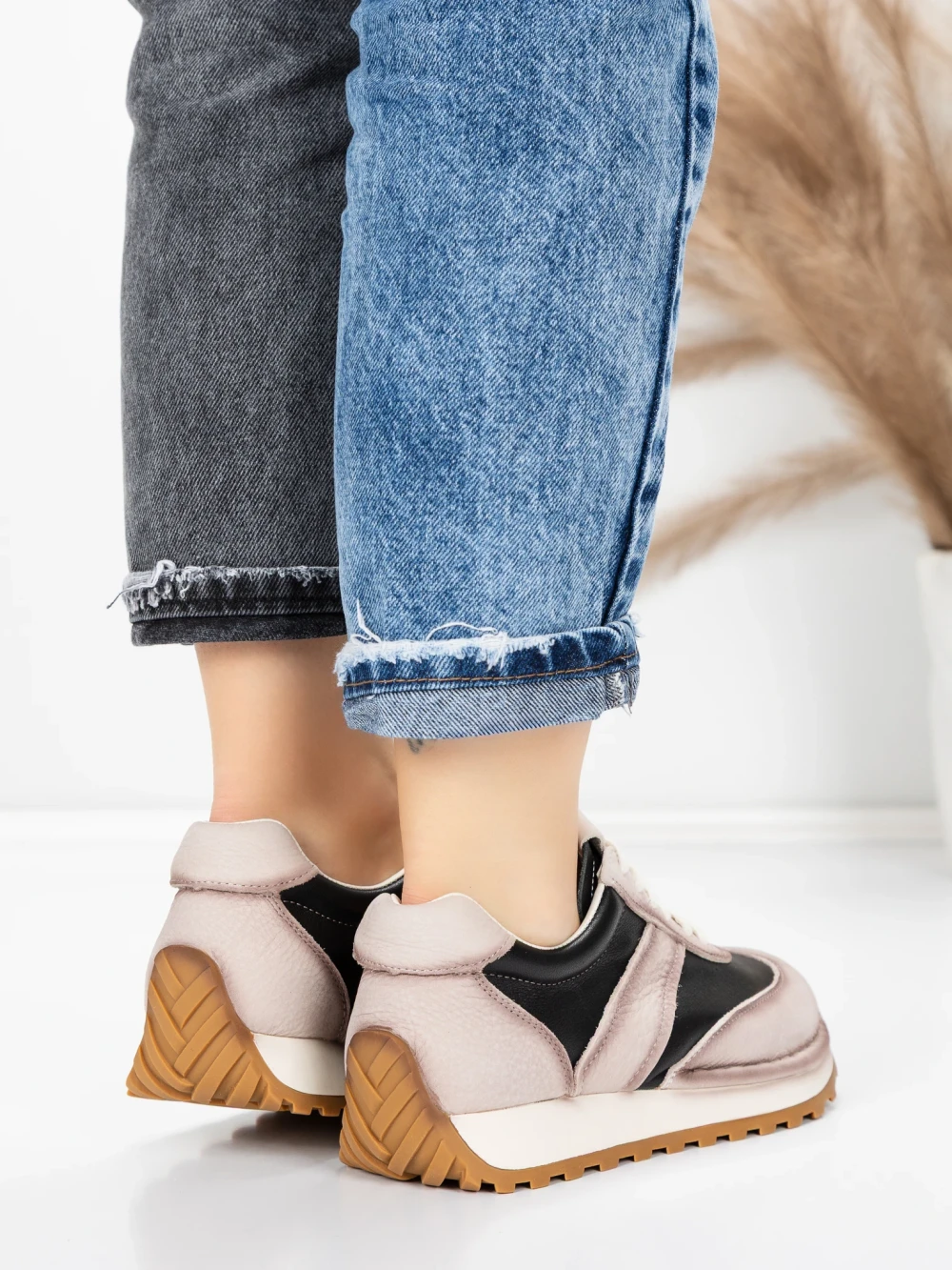 Ženske sportske cipele od prirodne kože KM9218 Crna-Krem | Advancer
