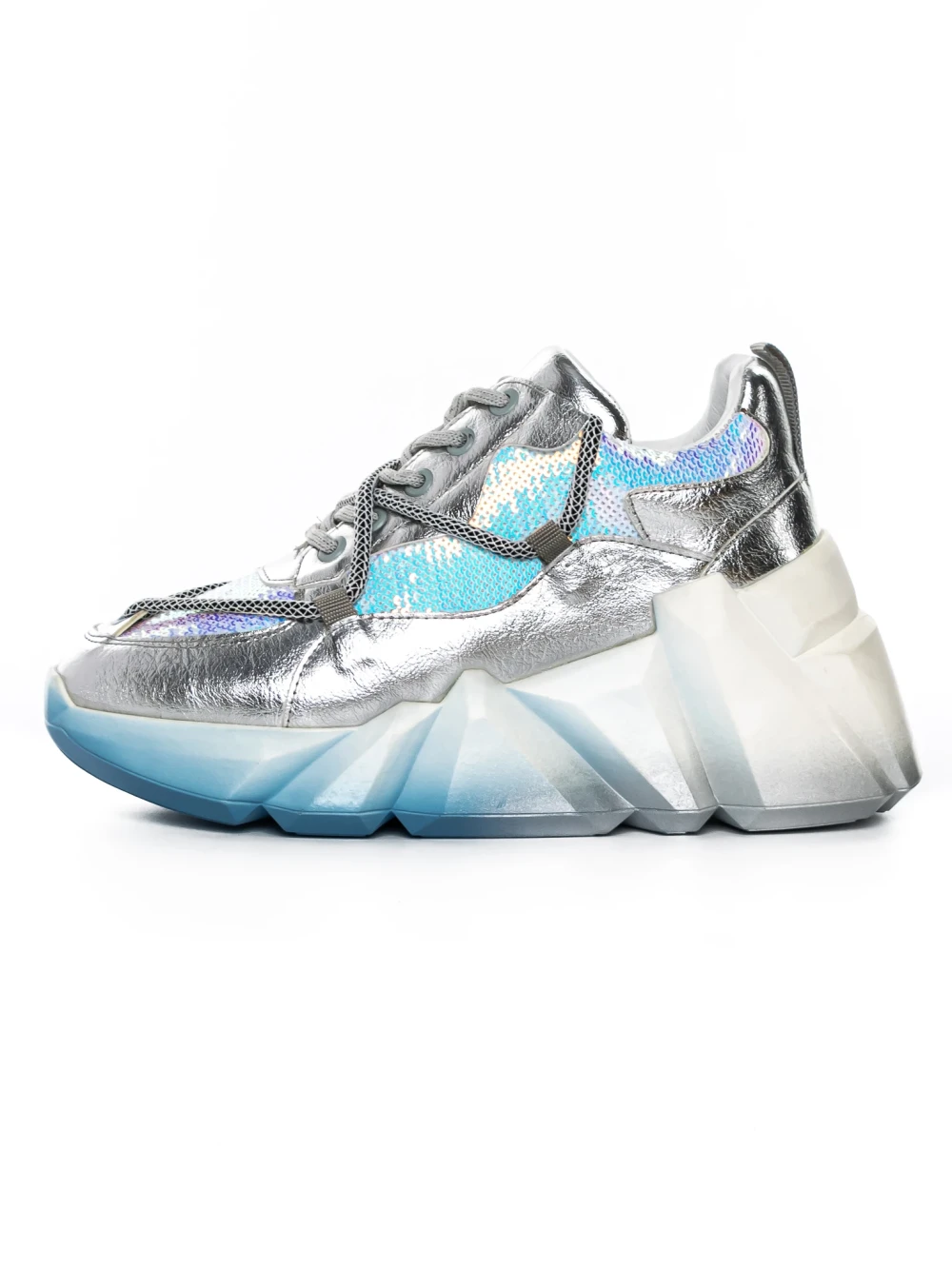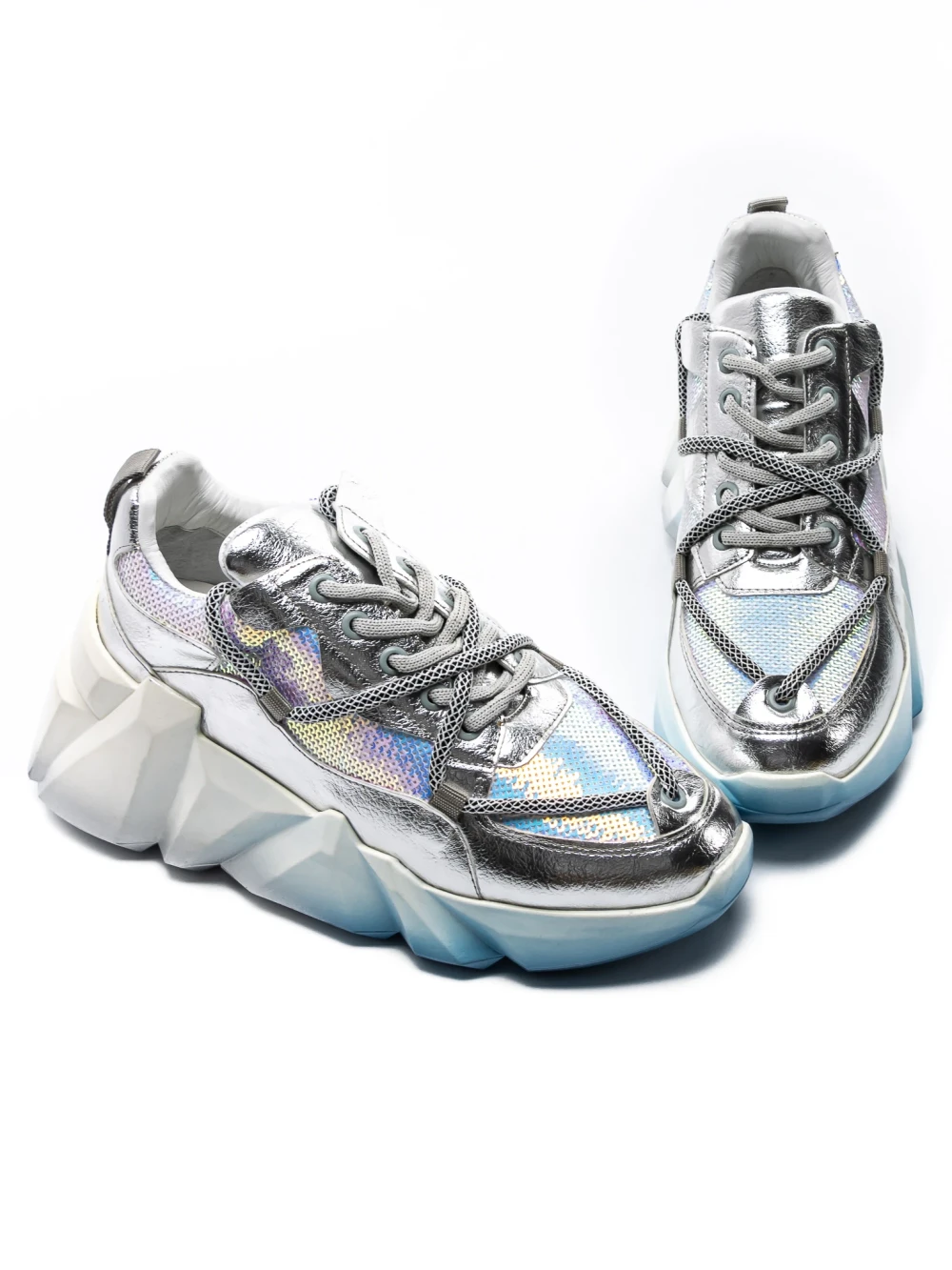 Sportske cipele s platformom za žene M0182-104 Srebrna | Seniorah