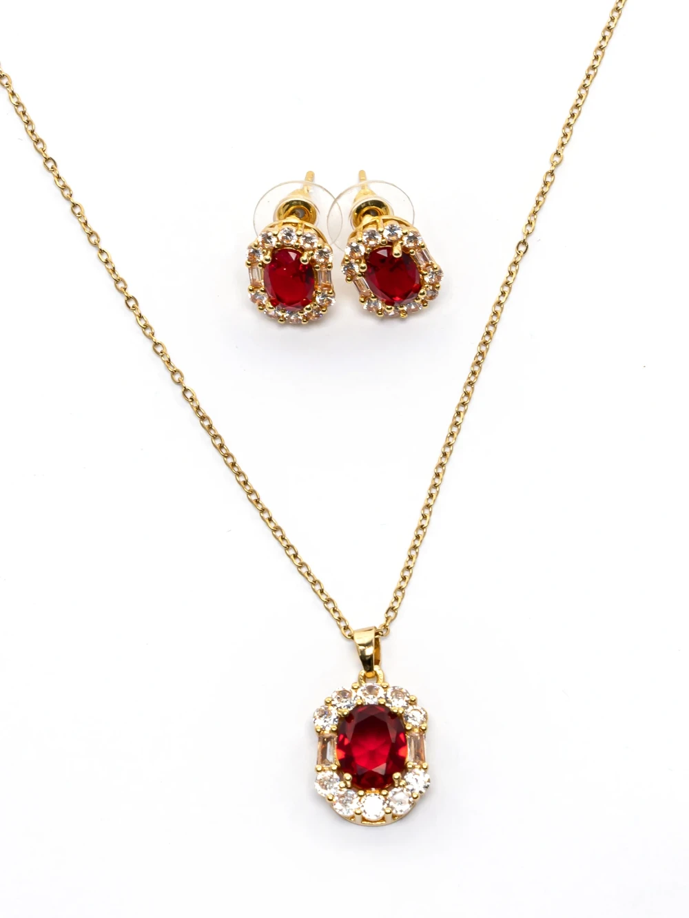 Set ogrlica + naušnice T1021300 Zlatna-Crvena | Mei