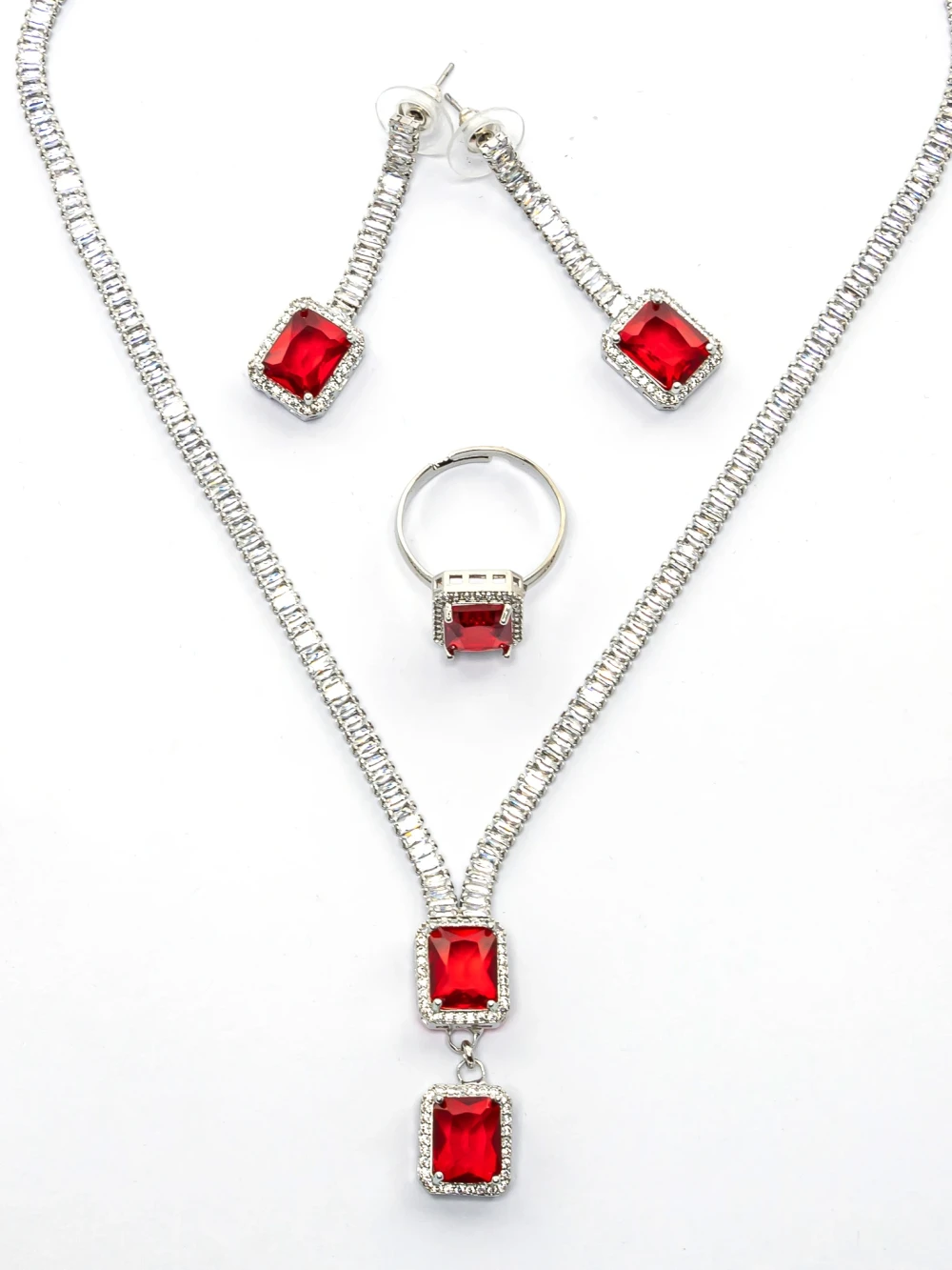 Set ogrlica + naušnice CLR016 Srebrna-Crvena | Mei