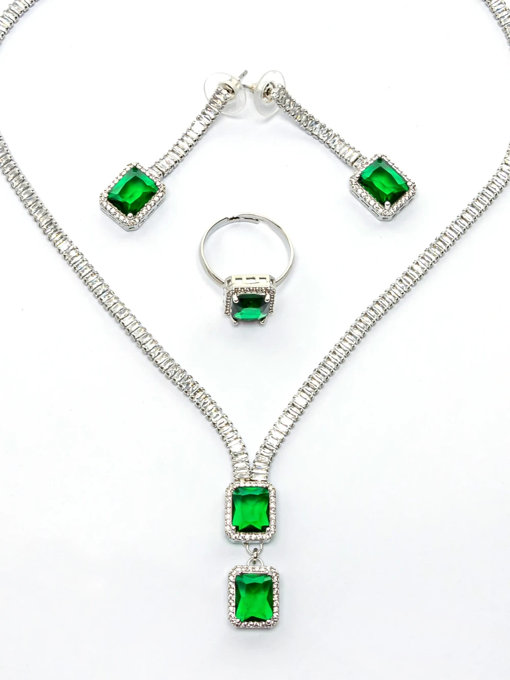 Set ogrlica + naušnice CLR016 Srebrna-Zelena | Mei